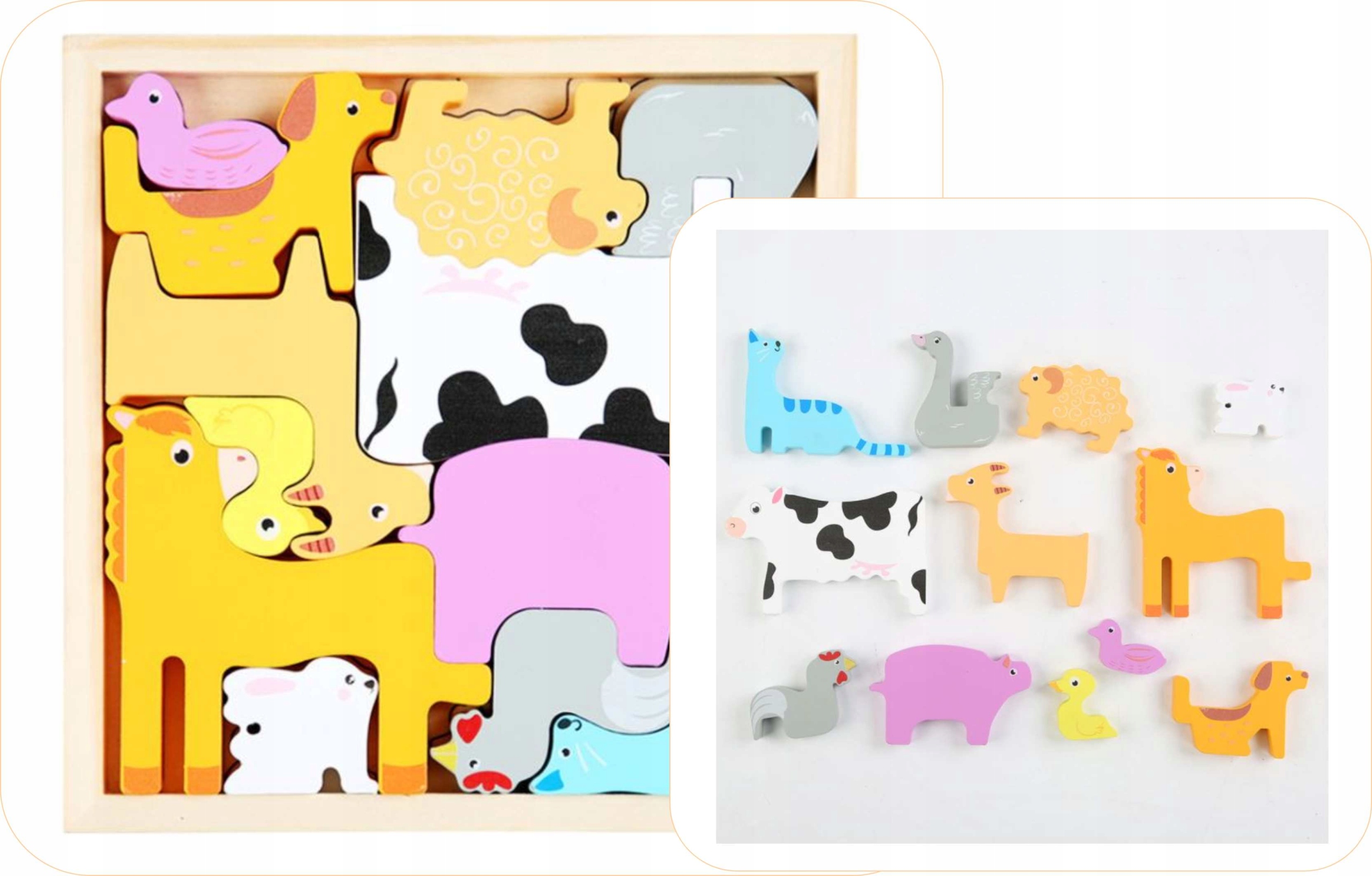 - 🐰 Edukacyjna i rozwijająca: Uczy rozpoznawania popularnych zwierząt domowych, rozwija zdolności manualne, koordynację ruchową oraz umiejętność logicznego myślenia.